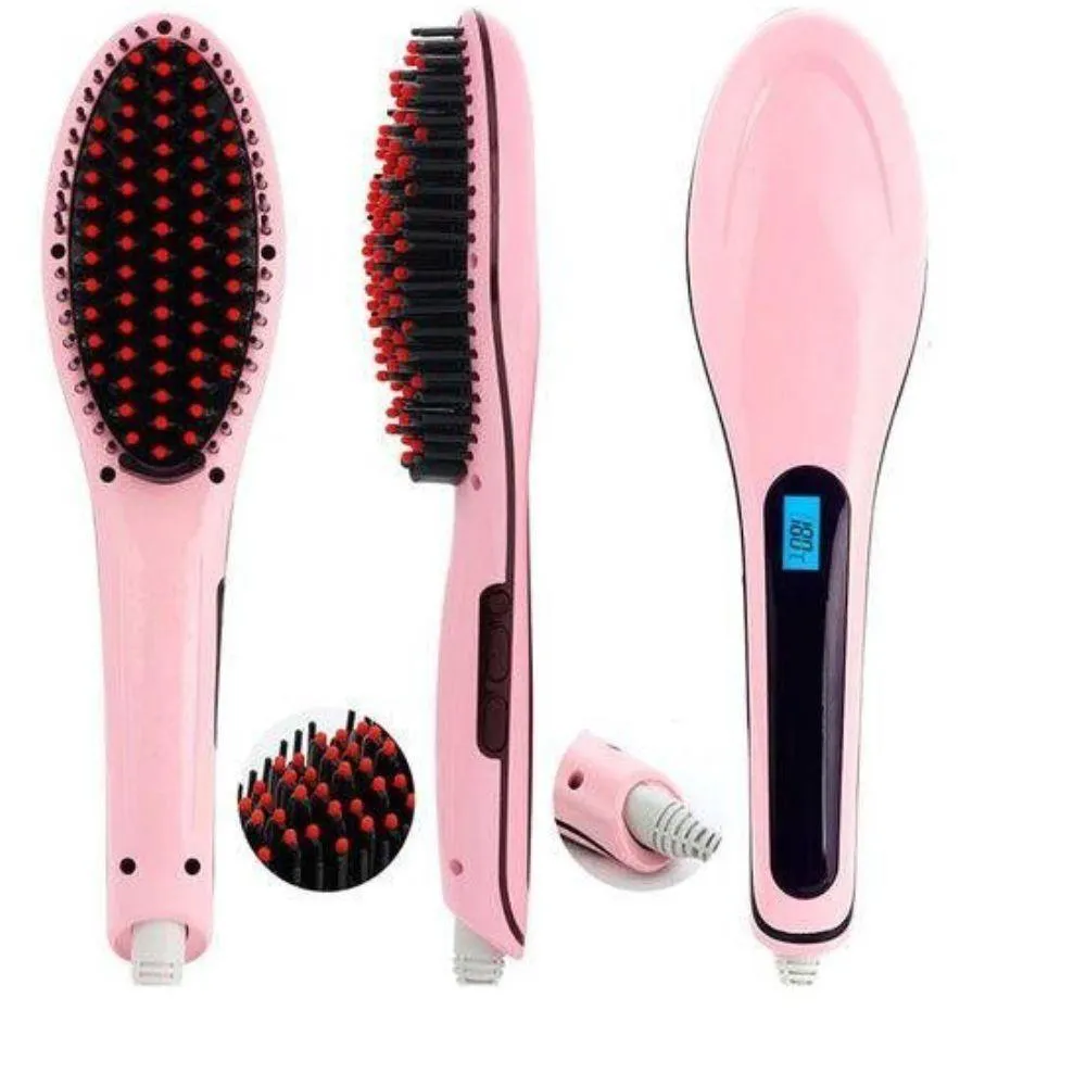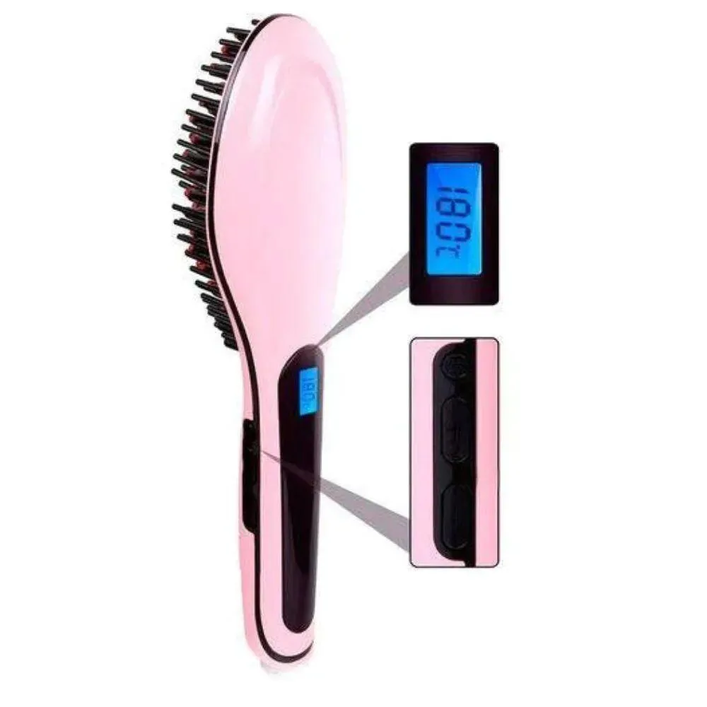 escova elétrica Alisadora você pode escolher facilmente a temperatura utilizando os botões de controle, visualizando no display.Você nunca mais irá perder seu tempo com baixa temperatura ou se queimar com a temperatura muito alta!!Não danifica os fios e garante cabelos Lisos, com aparência natural. É a opção Ideal para os que estão insatisfeitos com os cachos e