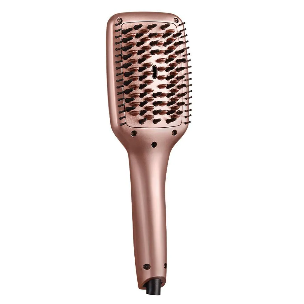 A escova Alisadora Gold Edition da Kiss New York, alisa, desembaraça e escova os seus cabelos de forma natural, perfeito para todos os tipos de cabelos. Com a liberação de partículas iônicas do centro da escova, mantêm seus cabelos saudáveis, macios, sedosos e livre de frizz. Feito com placas de cerâmica para dar mais brilho a seus cabelos sempre que for usada, as cerdas de silicone à prova de calor protege seu couro cabeludo evitando machucar, deixando mais confortável para o uso. Possui cabo giratório de 2 metro para dar mais conforto e praticidade no uso do dia-a-dia e possui um display digital em LCD para melhor controle de temperatura. Temperatúra máxima de 230°C.