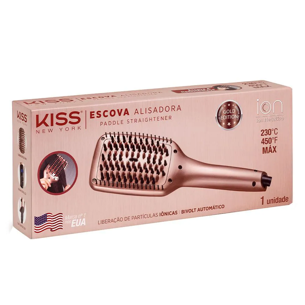 Escova Alisadora Kiss Ny - Gold Edition Bivolt