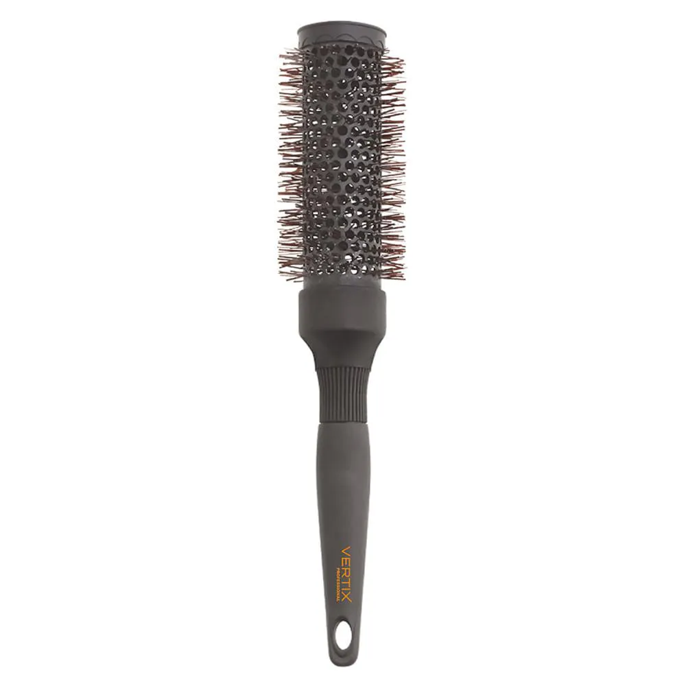 A escova de cabelo Nano Silver Hot Ion 33 da marca Vertix possui cerdas ionizadas que combatem o frizz no cabelo. Corpo vazado que permite a passagem do ar do secador e aceleram o processo de transformação do cabelo. base de cerâmica que retém e distribui o calor do secador com mais eficiência.