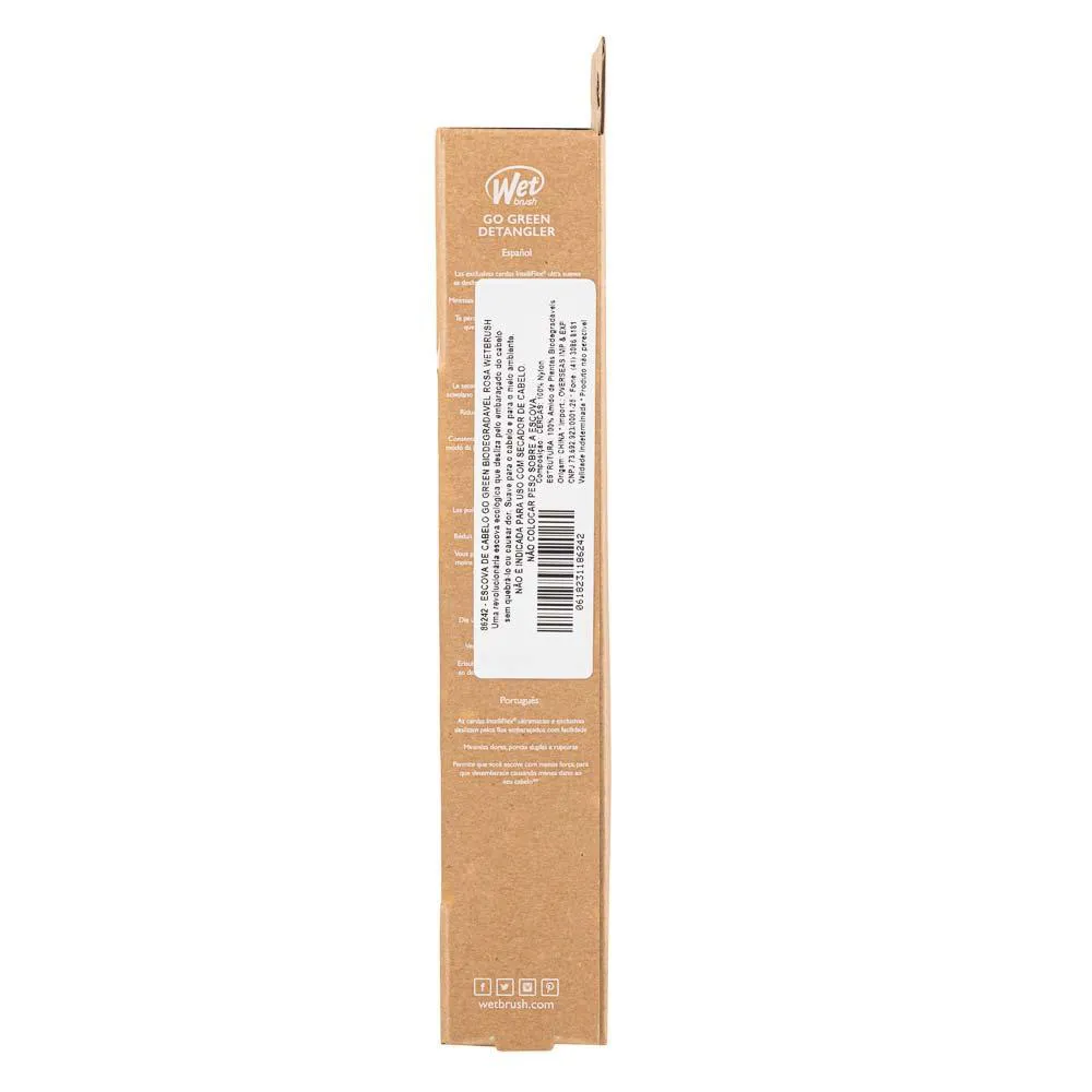 A nova WetBrush Go Green é 100% biodegradável, feita com amido vegetal natural que se decompõe com o passar do tempo quando descartada.