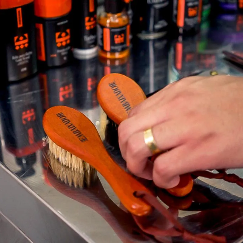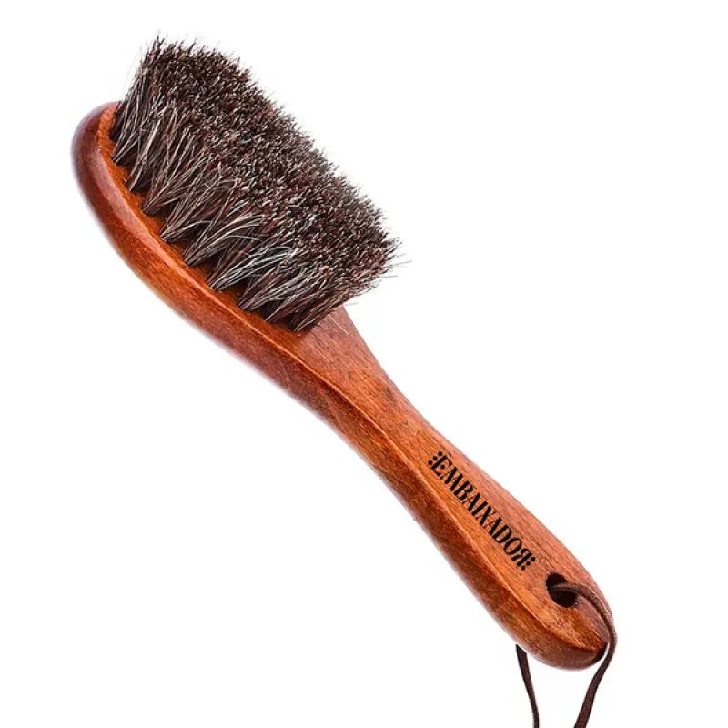 Ideal para a limpeza do excesso de cabelo e barba após o corte, Escova Degrade Pró Barber Embaixador possui Formato ideal para o uso no seu dia-a-dia e suas cerdas são mistas. Um excelente auxílio para barbeiros que fazem detalhes. Dicas de Conservação: - Limpe a escova de uma a duas vezes por semana. Inicie o processo retirando o excesso de fios.
