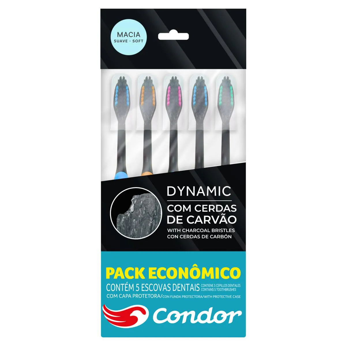 Escova Dental Macia Carvão Condor Dynamic 5 Unidades
