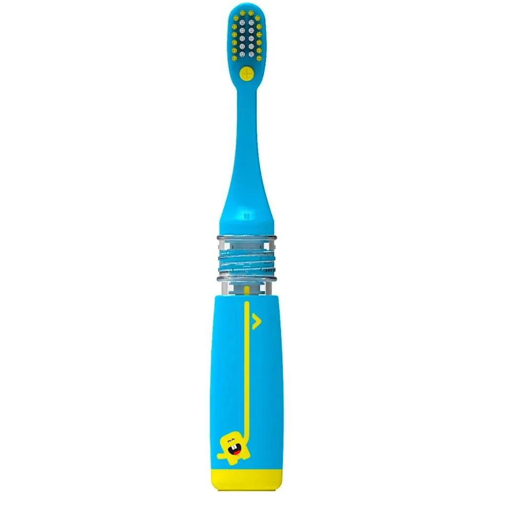 Então, na hora da escovação basta girar o cabo da escova para que o gel dental apareça nas cerdas, exatamente na dosagem correta a ser utilizada pelos pequenos. Essa é a mágica, gel dental na medida certa.
