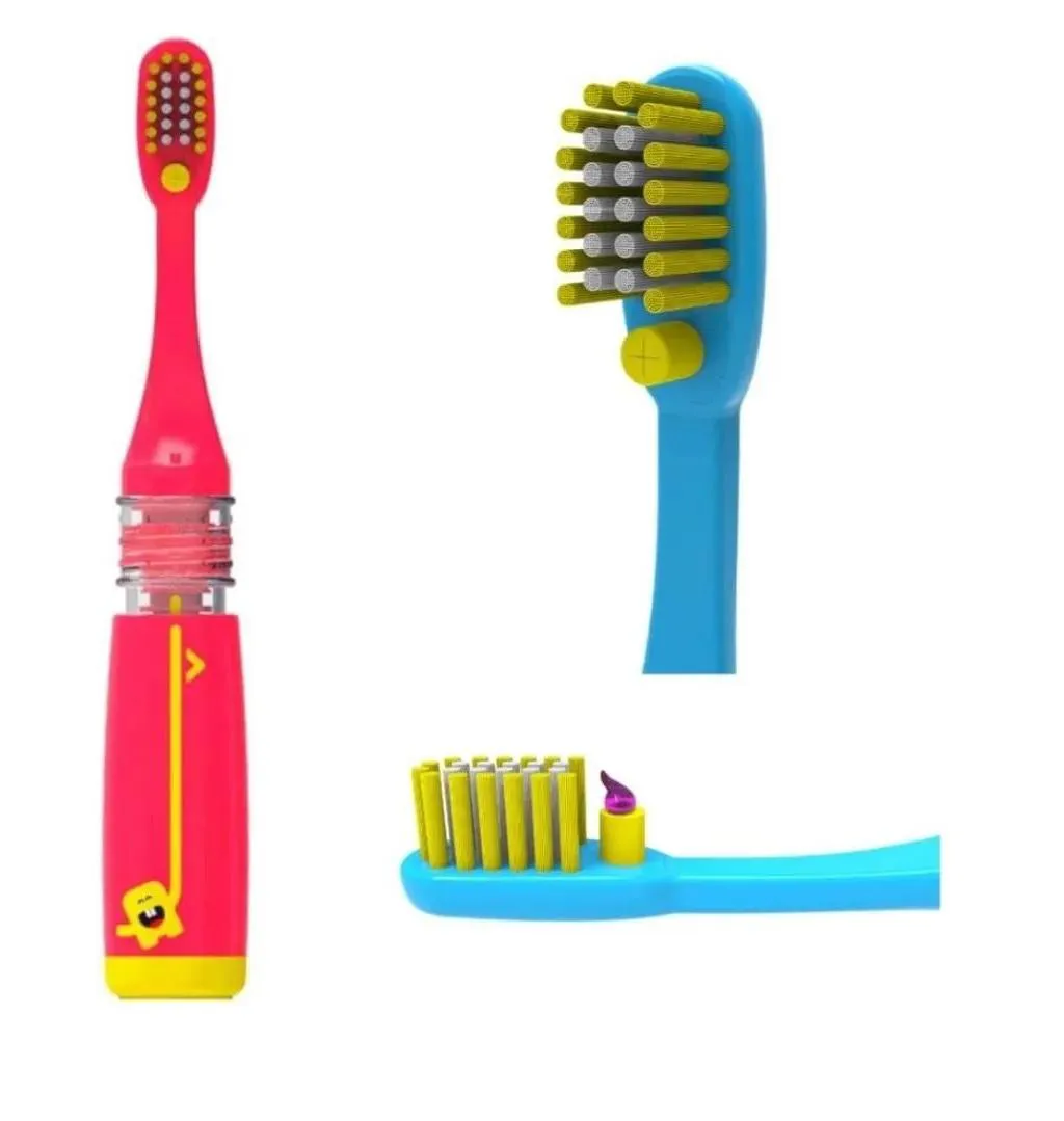 Primeiro você abastece a escova com o gel dental infantil que a criança mais gosta.