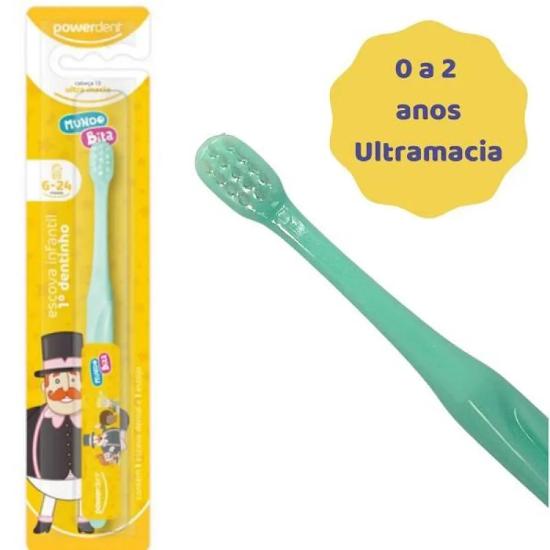 A escova dental infantil PowerDent Mundo Bita 1º Dentinho é perfeita para a escovação dos primeiros dentinhos dos bebês, possui cabeça com cerdas ultra macias e com formato adequado à arcada dos pequenos.