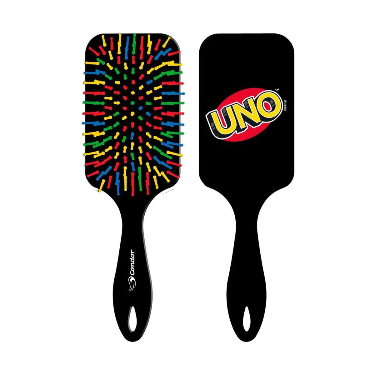 Com um formato e tamanho ideais, a escova permite que você desembarace os fios sem esforço, reduzindo a quebra e deixando seus cabelos mais saudáveis. Sua estética moderna e divertida, inspirada no universo do Uno, traz um toque de originalidade ao seu dia a dia.Atributos do Produto