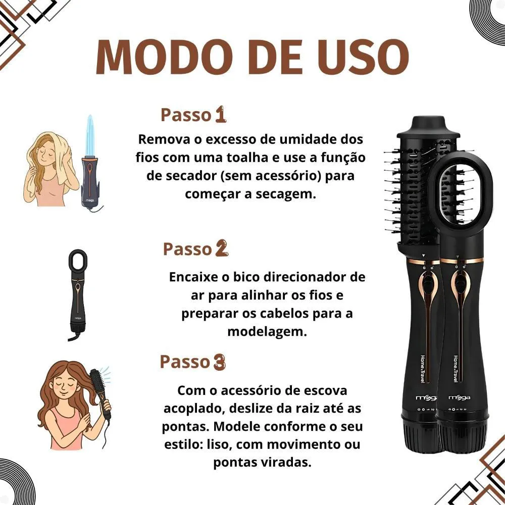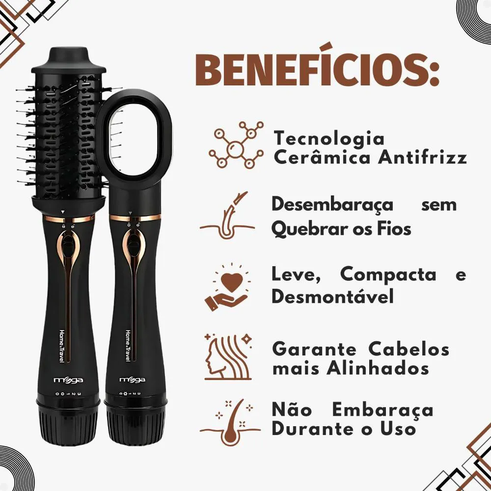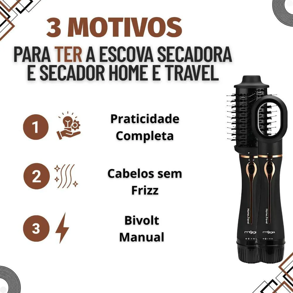 escova Secadora e Secador MEGA Home e Travel 1200w Bivolt: Versatilidade 3 em 1 para Seus Cabelos em Qualquer Lugar