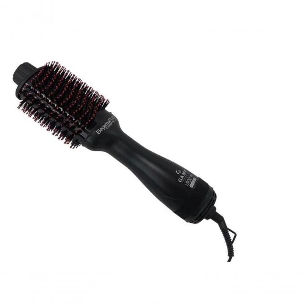 Escova Secadora GAMA Italy Eleganza Plus 1300W - PretaA Escova Secadora GAMA Eleganza Plus é a ferramenta 3 em 1 ideal para secar, alisar e modelar seus cabelos com praticidade e rapidez. Com 1300W de potência e a tecnologia Ceramic Ion, ela garante um acabamento profissional, com menos frizz e muito mais brilho, tudo em um único aparelho e com a facilidade de usar apenas uma das mãos.Principais Características:Tecnologia Ceramic Ion: O revestimento cerâmico distribui o calor de forma uniforme, protegendo os fios. A alta emissão de íons negativos sela as cutículas, eliminando o frizz e garantindo um cabelo com muito mais brilho e maciez.3 em 1: Seca, Alisa e Modela: Une a potência de um secador com a praticidade de uma escova, permitindo que você crie diferentes estilos de forma rápida e eficiente.Controle de Temperatura e Velocidade: Com 3 opções de temperatura e 2 velocidades, além de um jato de ar frio, você tem o controle total para se adaptar a qualquer tipo de cabelo e penteado.Design Oval com Cerdas Mistas: O formato oval é ideal para alisar e dar volume, enquanto as cerdas de nylon macias e de dupla altura deslizam suavemente, desembaraçando e alinhando os fios.Bivolt Automático: Perfeita para levar em viagens, funciona em ambas as voltagens (110V e 220V) sem a necessidade de chave seletora, garantindo a mesma performance em qualquer lugar.