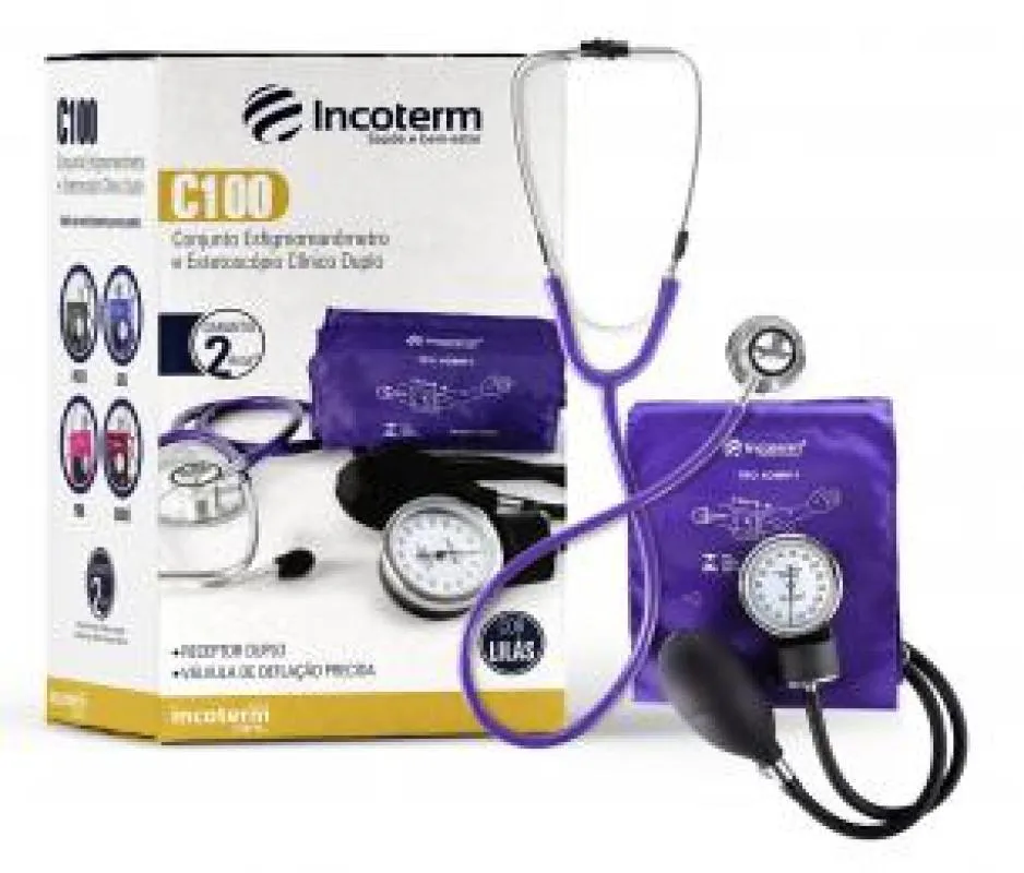 Esfigmomanometro e Estetoscopio Conjunto Incoterm C100 Lilas.