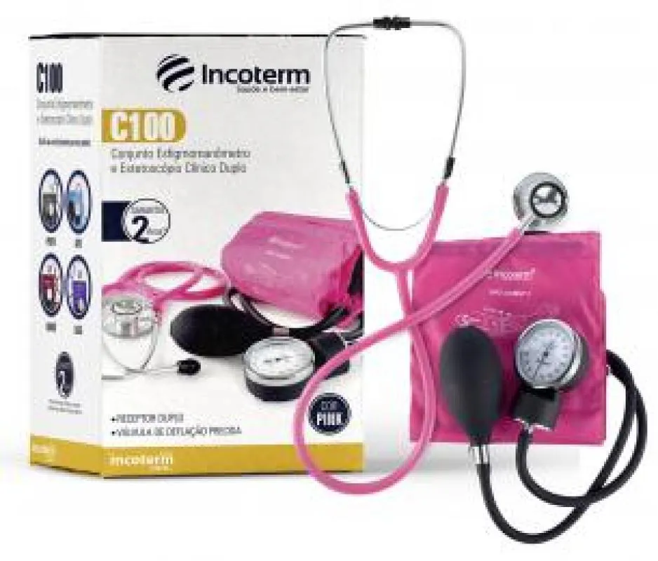 Esfigmomanometro e Estetoscopio Conjunto Incoterm C100 Pink.