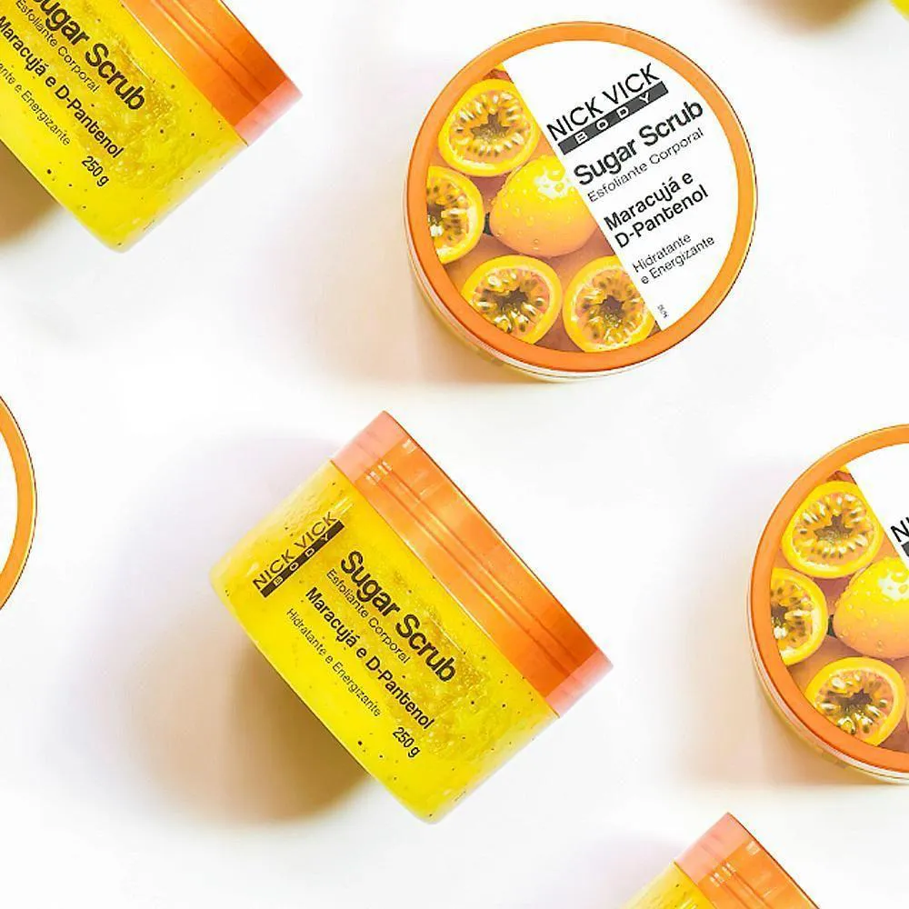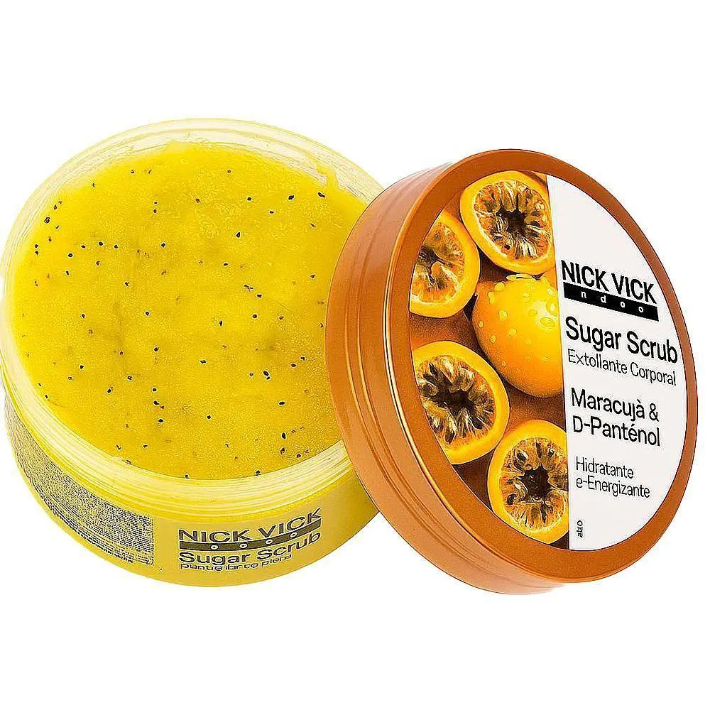 - Quem busca produtos veganos e naturaisCompre agora e transforme seu banho em um momento de spa com o Esfoliante Corporal Sugar Scrub Nick Vick Body Maracujá 250g!