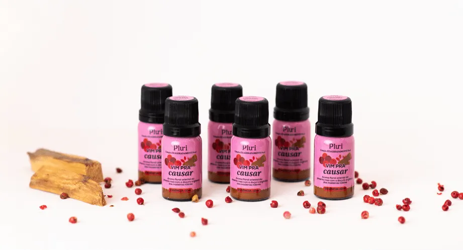 Aroma com alta concentração, oriental da Pimenta Rosa com a doçura orgânica das madeiras nobres.Essência projetada para uso com o difusor elétrico.Ao conectar seu Difusor Elétrico na tomada, adicione 15 gotas de essência aromática Pluri e acione o botão de ligar, para que o ambiente permaneça aromatizado por até 4 horas.