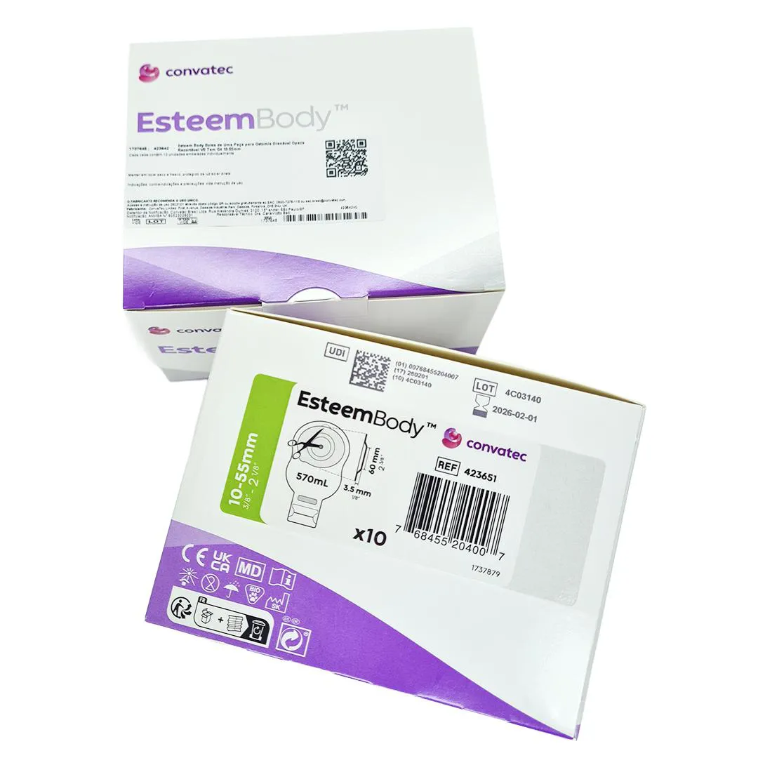 Esteem Body Bolsa Colostomia Ileostomia Profundidade 3,5Mm G4 Drenável Transparente Recortáv Bolsa Esteem V0 35mm G4 1055mm Caixa 10 Unidades 423651