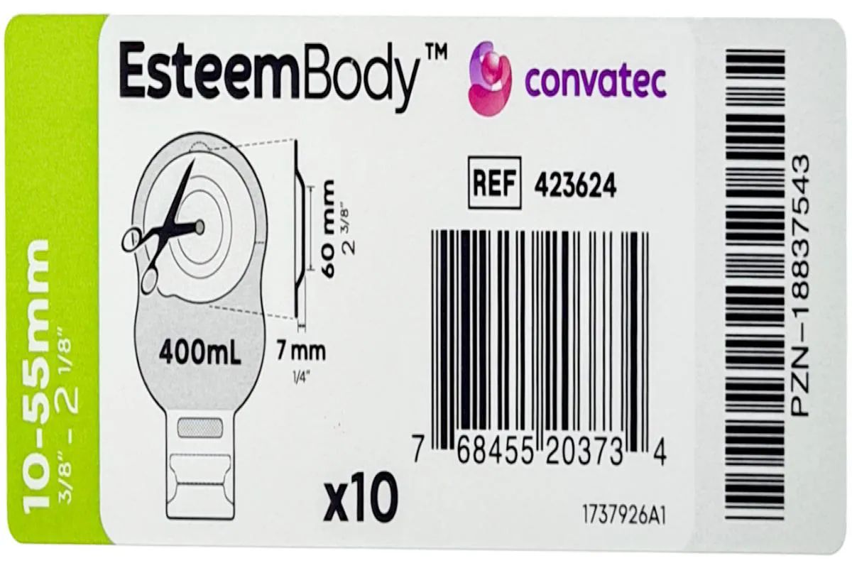 Esteem Body Bolsa Colostomia Ileostomia Profundidade 7Mm Drenável Opaca Recortável - Convatec Bolsa Esteem V0 7MM 1055mm Caixa 10 Unidades