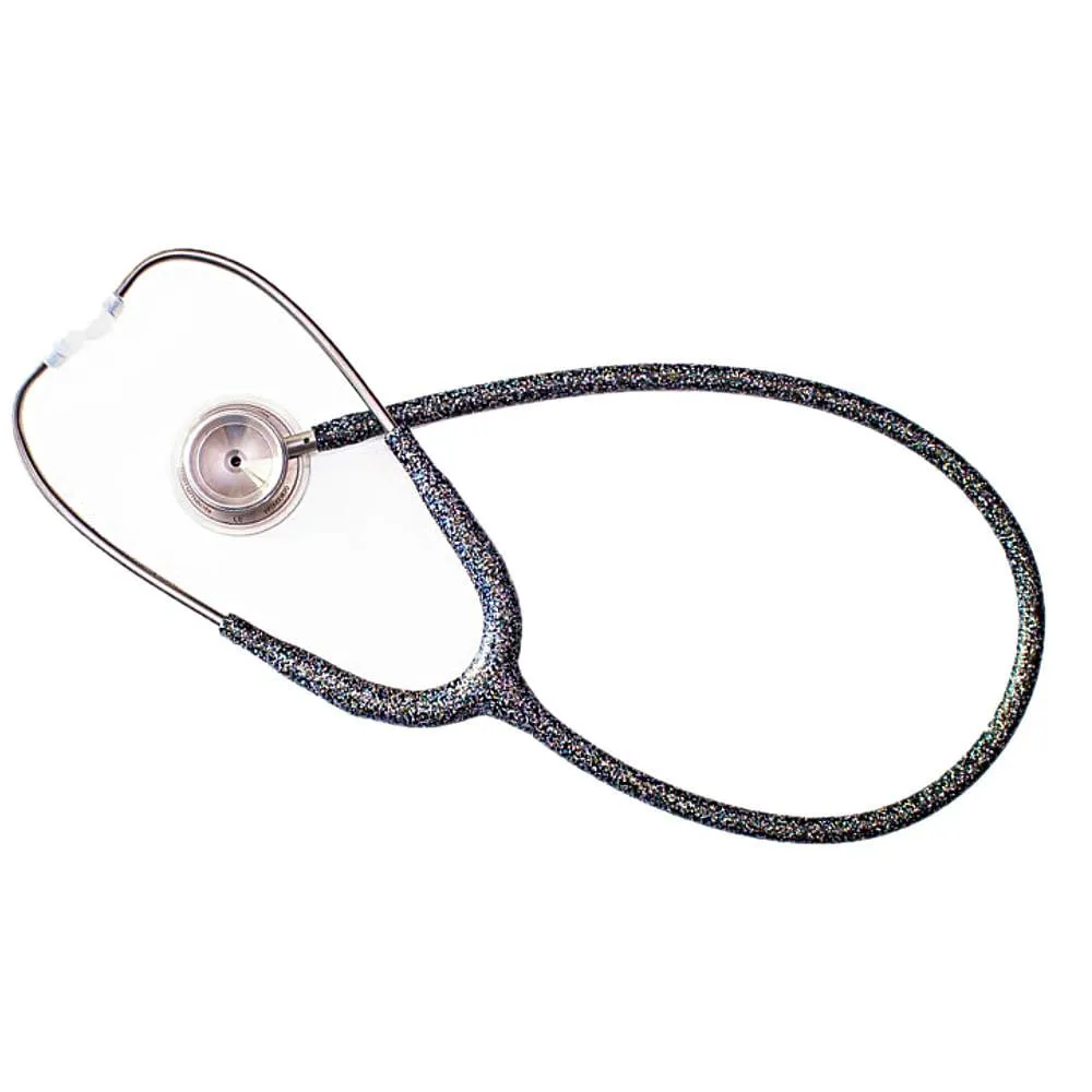 Faísca no Estetoscópio Black Glitter MD OneFinalmente, um estetoscópio que combina com sua personalidade brilhanteO avanço do auscultador é feito em alumínio anodizado leve e equipado com um exclusivo diafragma e fibra ultrafina para maior amplificação e transmissão de sons cardíacos e pulmonares.As olivas de silicone da ComfortSealTM são macias e isentas de ftalatos (são um grupo de compostos químicos derivados do ácido ftálico, tal como o cloro ftalato, utilizado como aditivo para deixar o plástico mais maleável.Para garantir um ajuste adequado e isolamento do som, as olivas estão disponíveis em três tamanhos: pequeno, regular e grande.As hastes auriculares são de aço inoxidável, polido à mão e pré-inclinados, com mola interna patenteada para garantir a maior durabilidade.Os adaptadores das olivas de SafetyLockTM (Trava de segurança) são os melhores da indústria para a segurança do usuário.Construído com uma tubagem grossa e de PVC sem látex e configuração em Y, ajudando a isolar ruídos e sons e bloqueando ruídos externos, que também impede as rachaduras e os desgastes que podem ocorrer com o uso repetido.O tubo longo mantém um espaço confortável entre o profissional de saúde e o paciente.A câmara de liga metálica interna patenteada localizado na tubulação acústica mantém o canal aberto para a transmissão máxima de som para o fone de ouvido.acessórios INCLUÍDOS:Dois pares de olivas do ComfortSealTM extra, um diafragma de fibra ultra-sensível extra, e etiqueta de identificaçãoANVISA: 80686360044Garantia Vitalícia pela MDF:Todos os estetoscópios da MDF Instruments incluem garantia vitalícia e reposição de peças gratuitas para toda vida útil do instrumento. A garantia vitalícia cobre todos os defeitos que possam ocorrer devido a fabricação e também inclui a tubulação. (Saiba mais em https://www.mdfinstruments.com/warranty-information)As cores apresentadas no site são meramente ilustrativas e podem ou não corresponder com exatidão à tonalidade aplicada.Para mais informações sobre manuseio e cuidados quanto ao uso do produto, consulte o Manual do Usuário.Imagem meramente ilustrativa e a descrição do produto é de responsabilidade do fabricante.