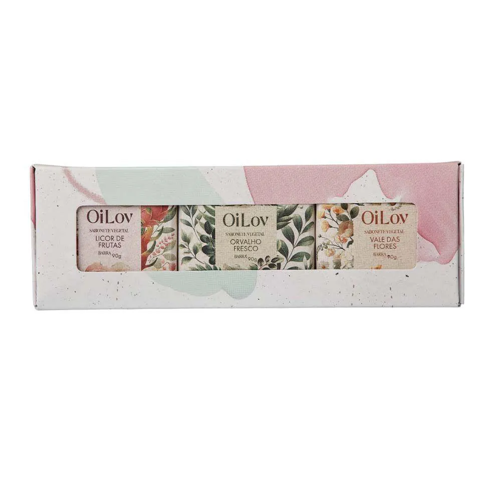Estojo sabonetes OiLov 3 unidades 90g cada.