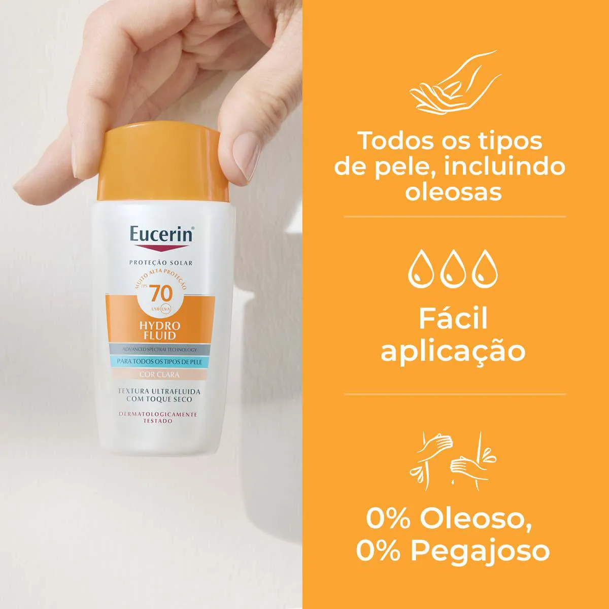 Protetor Solar Facial Eucerin Hydro Fluid FPS 70 Cor Clara 50ml