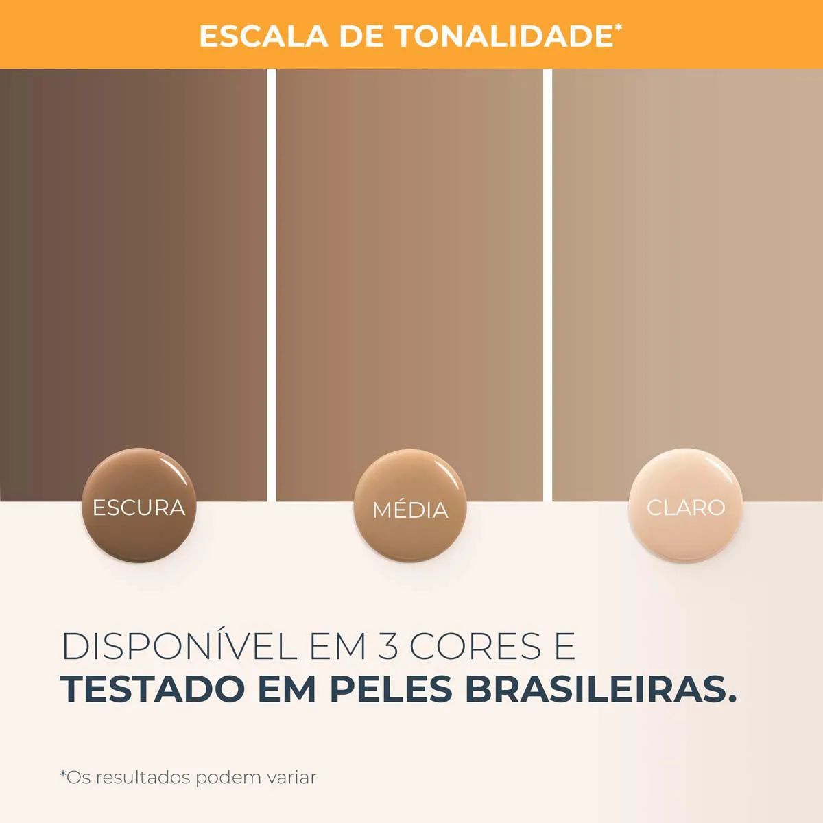- FPS 70 com ampla proteção UVA/UVB e ação antioxidante.