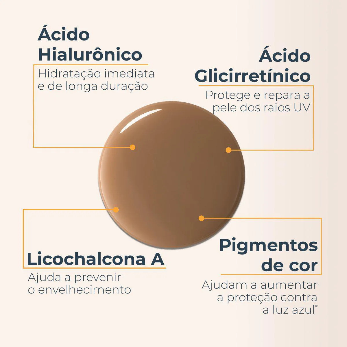 - Textura leve, hidro fluida e com toque seco imediato.