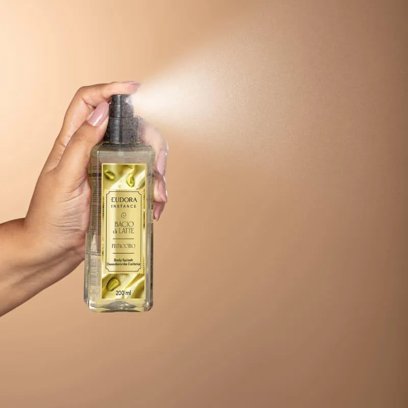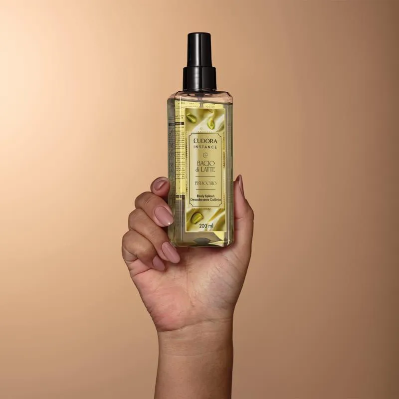 Body Splash Desodorante colônia Instance Pistacchio 200ml Eudora Instance se inspirou nas texturas e ingredientes dos gelatos italianos da Bacio di Latte para transformar seu cuidado diário. O que este body splash tem? Este body splash Instance Gelatos Pistacchio combina a cremosidade do Pistacchio com o delicioso Bacio di Latte, resultando em uma fragrância oriental gourmand, irresistível e surpreendente. A formulação entrega pele perfumada e enriquecida com extrato de Pistacchio, proporcionando uma sensação agradável e duradoura de frescor e bem-estar para o seu dia. Este body splash é a escolha ideal para quem busca uma fragrância jovial e moderna que marca presença. A linha conta com o Acorde Bacio di Latte: notas olfativas extraídas a partir da casquinha crocante com o clássico sabor Bacio di Latte, trazendo uma faceta gourmand inconfundível para ambas as fragrâncias. Quais são os benefícios? Pele perfumada com a deliciosa fragrância de Pistacchio Contém extrato de Pistacchio Sensação de frescor e bem-estar prolongados Fragrância Oriental Gourmand irresistível Nenhum produto Eudora é testado em animais, ou seja, este item possui selo Cruelty Free. Produto vegano, com ingredientes da economia circular e frasco com plástico reciclado.