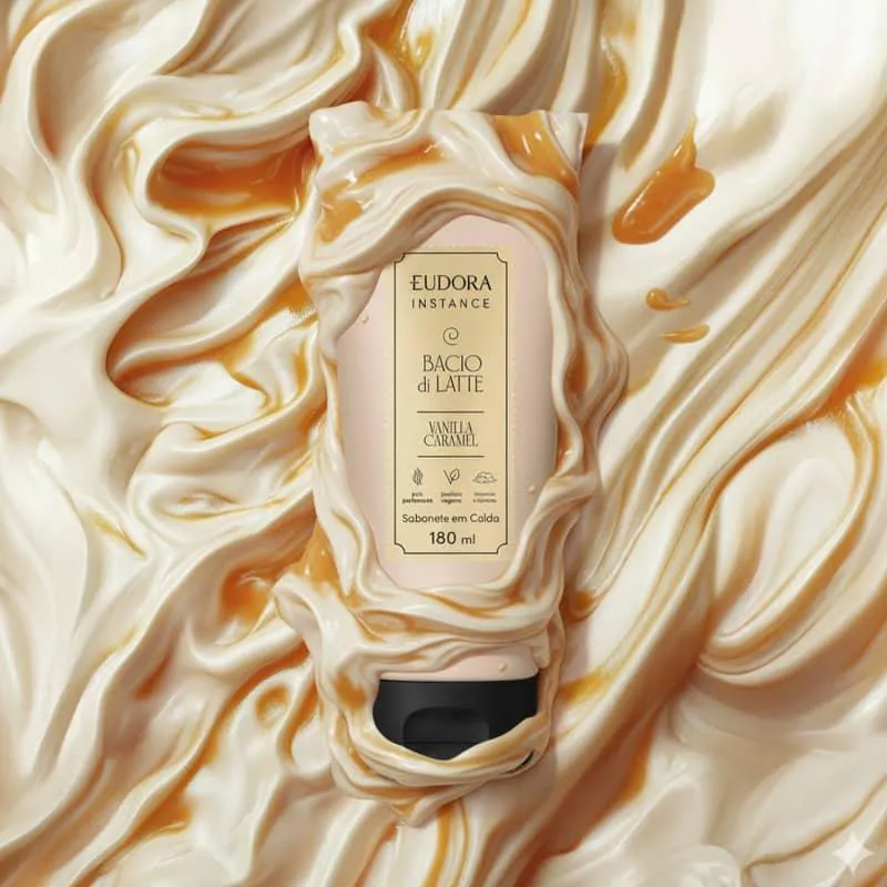 sabonete em Calda Instance Vanilla Caramel 180ml Eudora Instance se inspirou nas texturas e ingredientes dos gelatos italianos da Bacio di Latte para transformar seu cuidado diário. Transforme seu banho em um verdadeiro ritual de indulgência com o Sabonete em Calda Instance Vanilla Caramel 180ml Este sabonete em calda possui uma textura leve, com espuma cremosa e fácil de enxaguar, que limpa a pele sem ressecar. Sua fórmula, além de deixar a pele macia e perfumada, é livre de petrolatos e enriquecida com glicerina vegetal e vitamina e , proporcionando um cuidado suave e eficaz. A linha conta com o Acorde Bacio di Latte: notas olfativas extraídas a partir da casquinha crocante com o clássico sabor Bacio di Latte, trazendo uma faceta gourmand inconfundível para ambas as fragrâncias. Eudora Instance Vanilla Caramel combina a amada Baunilha de Eudora Instance com caramelo e o delicioso acorde Bacio di Latte em uma fragrância oriental envolvente e marcante. Quais os benefícios desse sabonete líquido em calda? Limpa sem ressecar Textura leve e espuma cremosa Fácil de enxaguar Deixa a pele macia e perfumada Formulação livre de petrolatos Contém glicerina vegetal e Vitamina E Nenhum produto Eudora é testado em animais, ou seja, este item possui selo Cruelty Free.