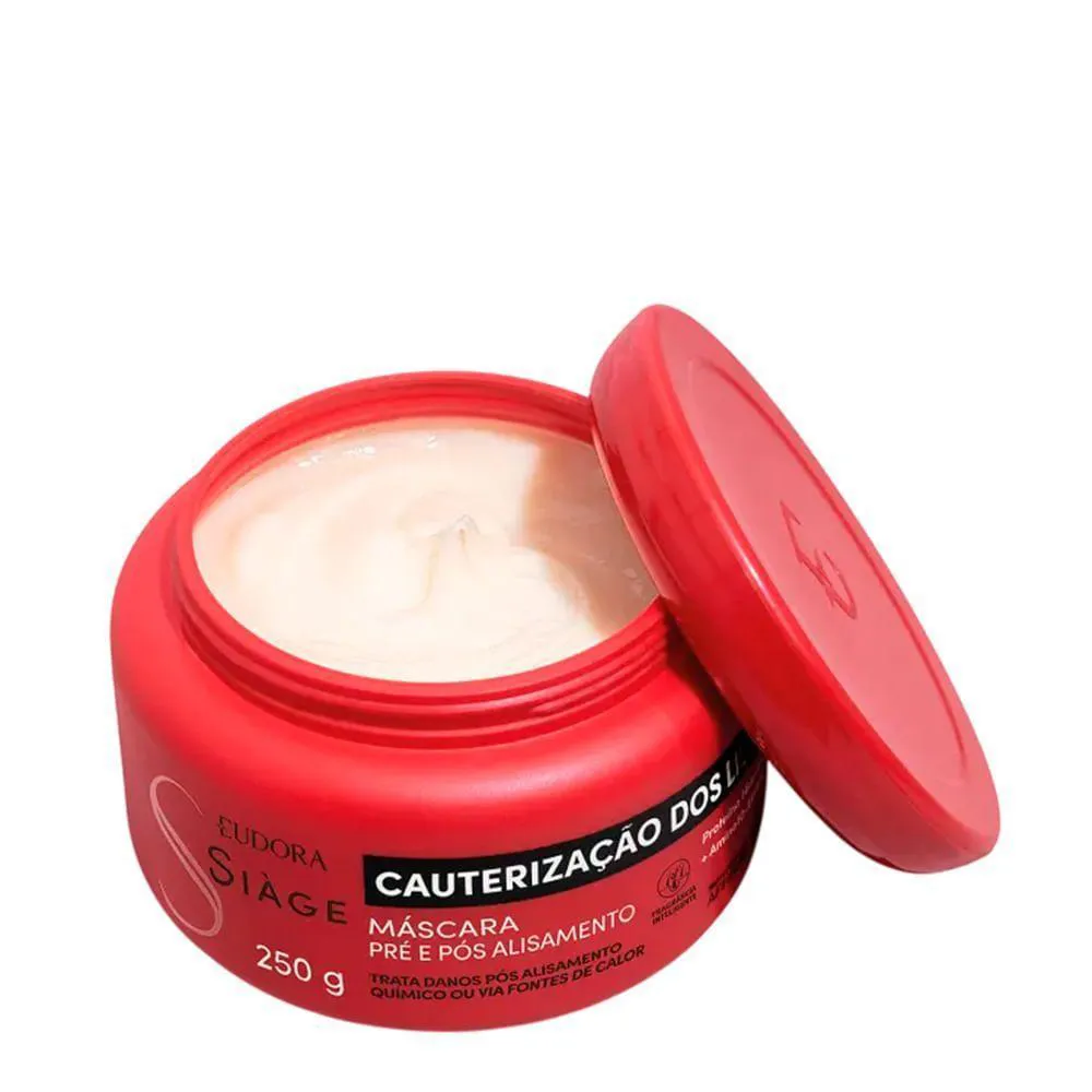A Eudora Siàge Cauterização dos Lisos Máscara Pré e Pós Alisamento 250g é perfeita para quem busca cabelos lisos, fortes e bem tratados, com proteção e cauterização ideais. Sua vegana e tecnologia avançada entregam um cuidado em casa, sendo essencial para rotinas de alisamento.