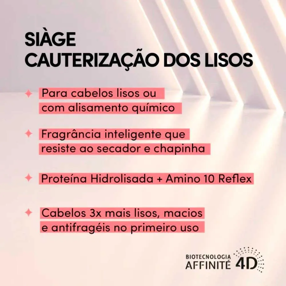 O Shampoo Siàge Cauterização dos Lisos atua diretamente nas áreas danificadas dos fios, promovendo uma cicatrização profunda desde a primeira aplicação. A combinação dos ativos Esqualano e Ômegas 3 e 6 devolve nutrientes essenciais aos cabelos, restaurando sua saúde e protegendo contra danos futuros. A biotecnologia Affinité 4D trata os fios até a camada mais profunda, garantindo uma transformação visível e duradoura.