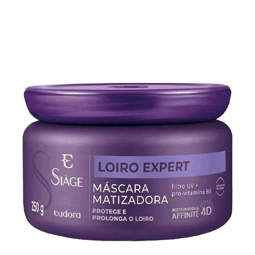 A Eudora Siàge Loiro Expert Máscara Matizadora 250g é a escolha perfeita para quem quer um loiro impecável, hidratado e protegido. Com tecnologia Affinité 4D, ela trata os fios de forma inteligente, oferecendo cuidado em casa e destacando-se como um must-have para amantes de cabelos loiros.