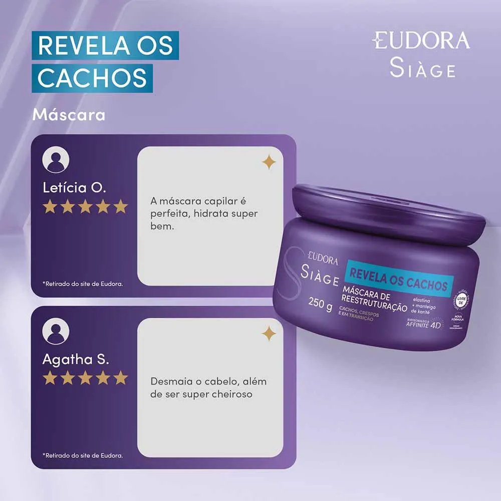 A Máscara Siàge Revela os Cachos promove uma reestruturação completa nos cabelos cacheados, ondulados, crespos e em transição!