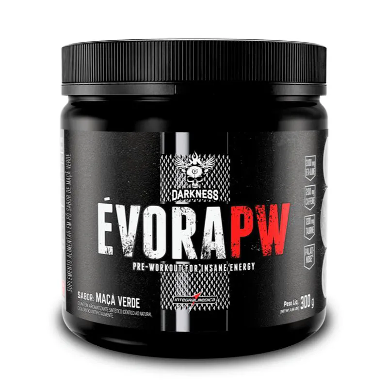 O Évora Pré Treino Maçã Verde Darkness 300g foi desenvolvido para favorecer a realização de treinos de força de alta intensidade. Sua fórmula contém ingredientes energéticos e neuroestimulantes que prolongam a disposição física e a concentração mental durante os treinos.