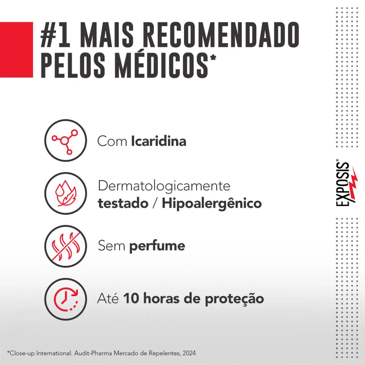 Exposis Gel é um repelente em gel que possui alta eficácia contra picadas de insetos transmissores de doenças, entre eles a dengue, a zika e a chikungunya. Com 20% de icaridina (substância hipoalergênica reconhecidamente eficaz na proteção contra insetos), Exposis Extreme oferece até 10 horas de proteção diária, se usado corretamente.