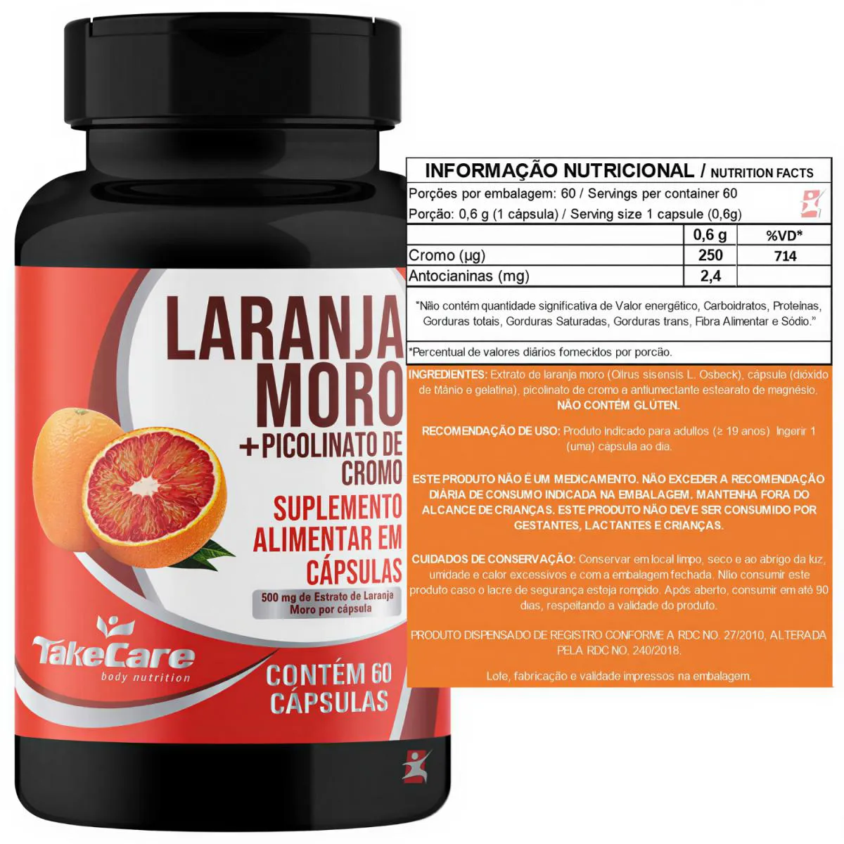 Extrato de Laranja Moro com Picolinato de Cromo 500Mg 60 Capsulas - Take Care