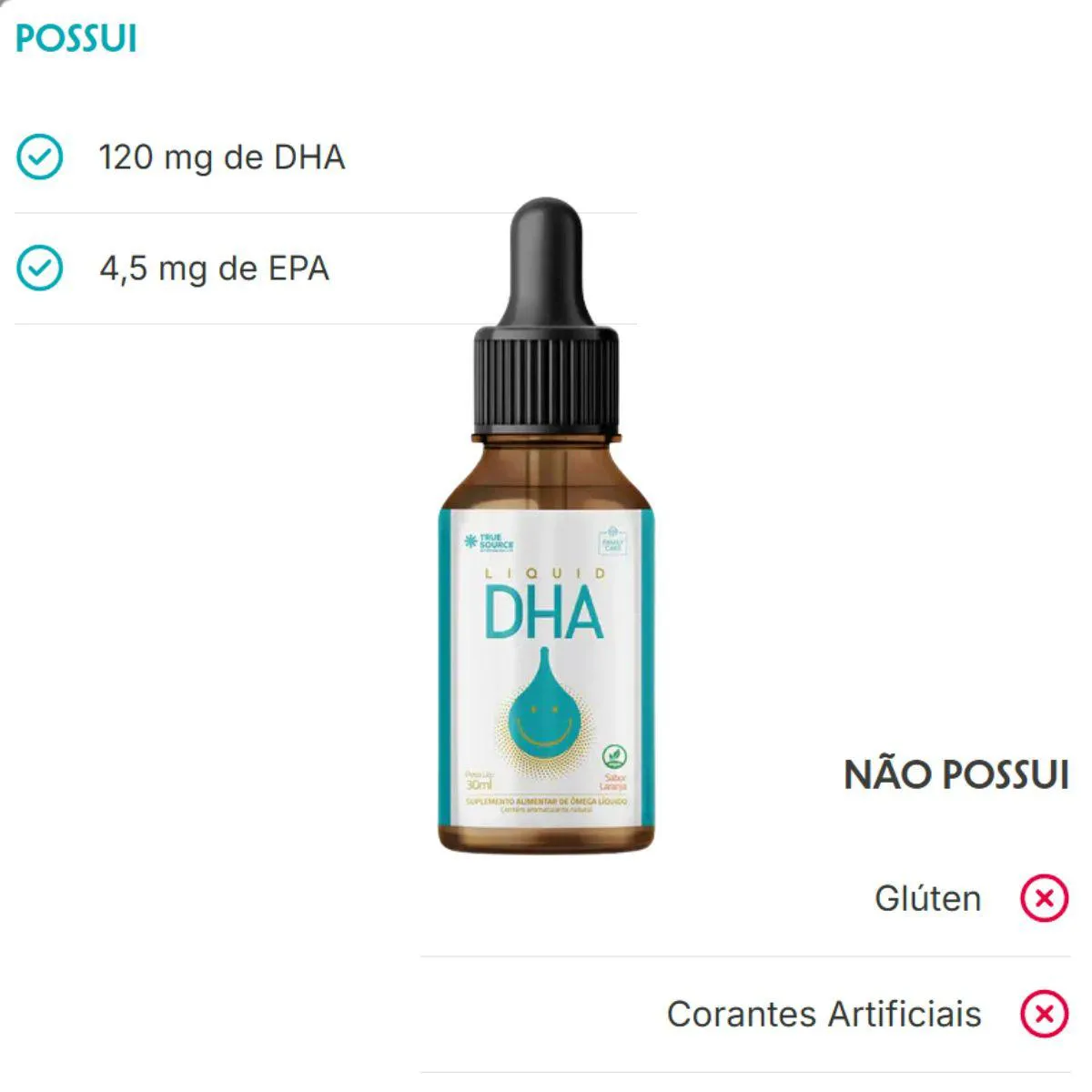 A composição utiliza DHA em formato concentrado, mantendo o perfil clean e sem adições desnecessárias. A True Source prioriza ingredientes de boa procedência e processos rigorosos de qualidade, entregando um suplemento claro e adequado a diferentes estilos alimentares. O formato em gotas permite um consumo mais personalizado, enquanto o frasco de 30ml oferece rendimento equilibrado para semanas de uso, dependendo da rotina de cada pessoa.
