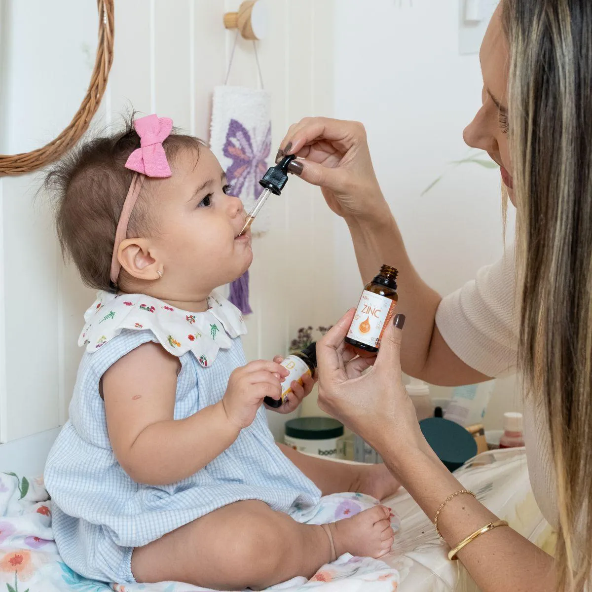 - Adicione as gotas diretamente em uma bebida leve como água, suco ou misturado a um alimento infantil.