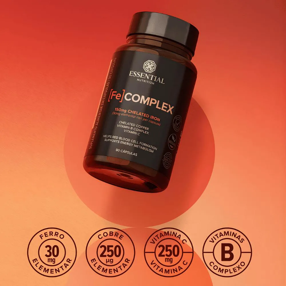 Fe Complex Ferro Quelado + Vitamina C 90 Caps - Essential Nutrition