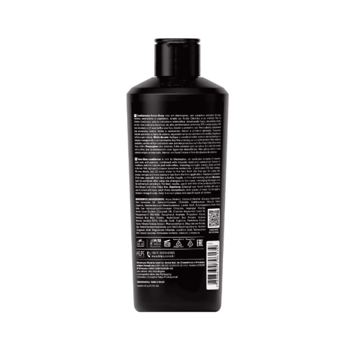 condicionador Force gloss Felps Professional – 250mL Condicionador Force Gloss rico em Marineplex, um complexo exclusivo de algas marinhas, aminoácidos e peptídeos, aliado ao Ácido Glicólico e ao nutritivo Óleo de Crambe. Condiciona, sela as cutículas e redensifica, devolvendo força, densidade e brilho aos fios. Com moléculas bioativas de alta performance promove 57% menos quebra, 18% mais densidade e 2X mais brilho aos fios desde o primeiro uso. Para cabelos visivelmente mais encorpados, jovens, fortes e resistentes desde a primeira aplicação. Tratamento indicado para cabelos com quebra, fragilizados e finos. Modo de Uso: Aplique o condicionador após o uso do shampoo ou máscara, massageando o comprimento dos fios e enxágue completamente. Composição: Aqua (Water), Cetearyl Alcohol, Glycerin, Cetyl Alcohol, Elaies Guineenses Oil, Behentrimonium Chloride, Cetrimonium Chloride, Parfum (Fragrance), Stearamidopropyl Dimethylamine, Lactic Acid, Butyrospermum Parkii (Shea) Butter, Guar Hydroxypropyltrimonium Chloride, Isopropyl Alcohol, Alcohol, Cocos Nucifera (Coconut) Oil, Crambe Abyssinica Seed Oil, Polyquaternium-7, PEG-90M, Tocopheryl Acetate, Propylene Glycol, Hydrolyzed Rice Bran Protein, Hydrolyzed Soy Protein, Sodium Benzoate, Disodium EDTA, Glycolic Acid, Arginine, Pentylene Glycol, Glycine, Palmaria Palmata Extract, Phenoxyethanol, Magnesium Nitrate, Algin, Methylchloroisothiazolinone and Methylisothiazolinone, Sodium Carrageenan, Biotin, Magnesium Chloride, Levulinic Acid, Tetrasodium EDTA, Glyceryl Caprylate, Potassium Sorbate, Linalool, Limonene.