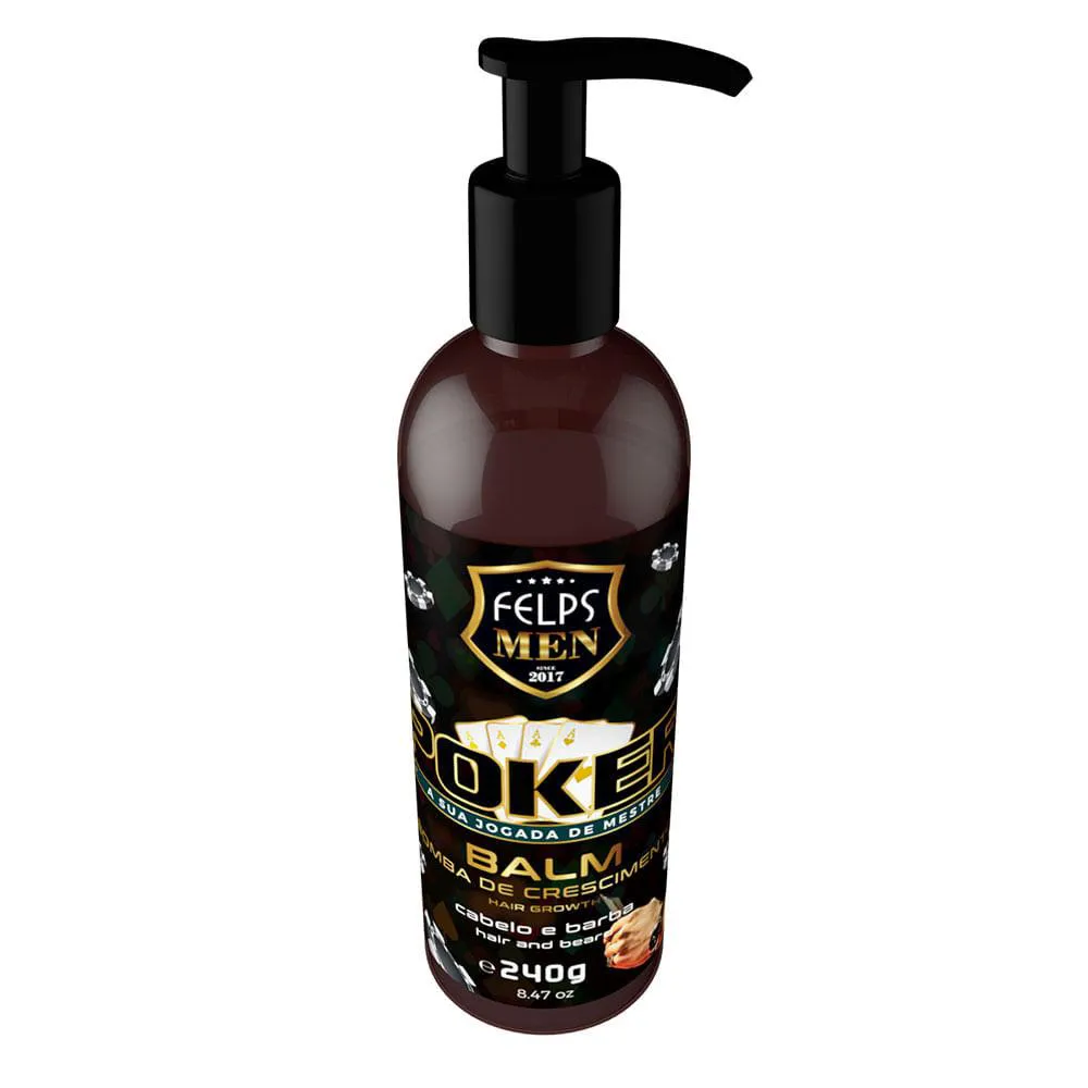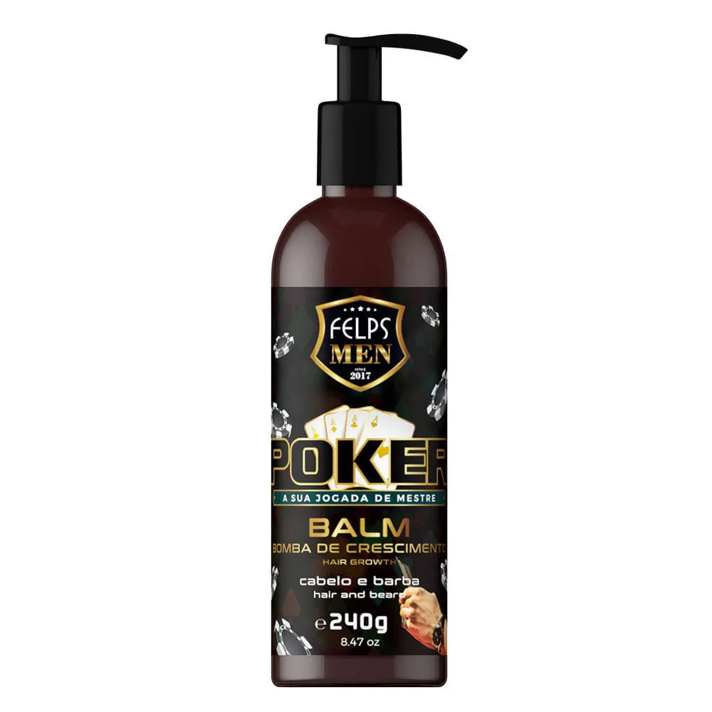Felps Men Poker Balm hidratante para barba e cabelo, formulado com uma bomba de vitaminas que estimula o crescimento. Fios extremamente fortes, macios e com brilho, da raiz às pontas. Acalma a pele sensível e ajuda a combater a queda. / Bálsamo masculino para barba e todos os tipos de cabelo. Felps Profissional Men Poker Balm Bomba de Crescimento ajuda a aumentar o brilho, maciez e força dos fios enquanto estimula o crescimento fortificado.