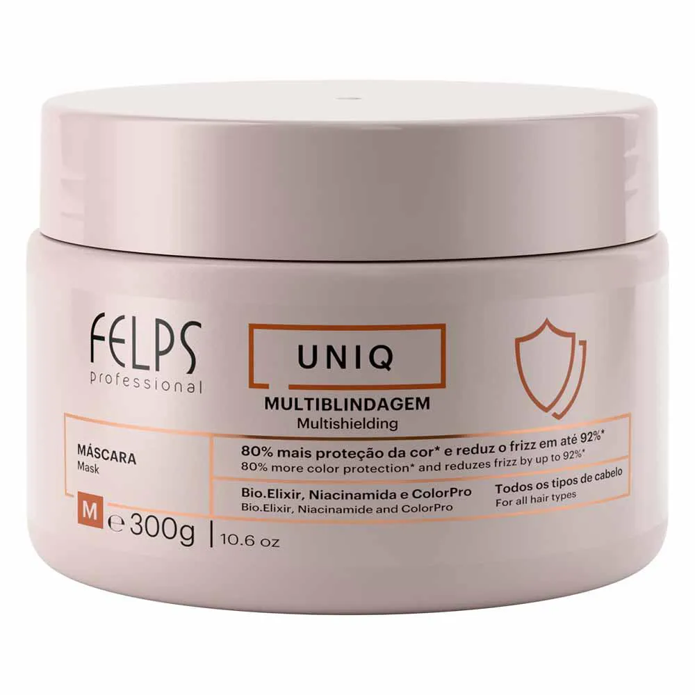 A Felps Uniq 6 em 1 Máscara é desenvolvido especialmente para proporcionar cuidados completos e intensivos aos cabelos. Este tratamento multifuncional é uma verdadeira revolução no cuidado capilar, oferecendo uma composição única de Bio.Elixir, Niacinamida e ColorPro. Esses ativos poderosos trabalham em sinergia para proteger a cor dos cabelos tingidos, reduzir o frizz e oferecer proteção contra danos ambientais. Ideal para todos os tipos de cabelo, a máscara é a escolha perfeita para quem busca fios saudáveis, sedosos e cheios de vida.