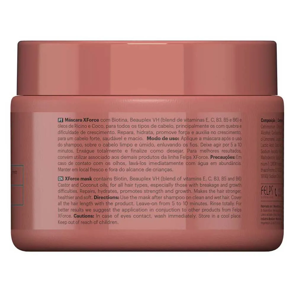 A Máscara Capilar Felps Profissional XForce é ideal para quem sonha em ter cabelos longos e saudáveis. Sua fórmula exclusiva, pensada para agir instantaneamente, conta com Óleos de Rícino e de Coco, Biotina e Blend de Vitaminas entre os principais componentes. Além de tratar profundamente, o produto não é testado em animais.
