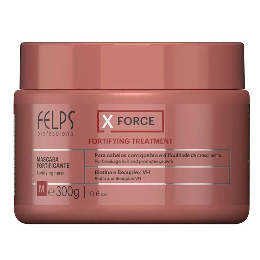 Felps Profissional XForce fortifica, minimiza a quebra e auxilia no crescimento dos fios, além de garantir resistência, brilho e maciez.