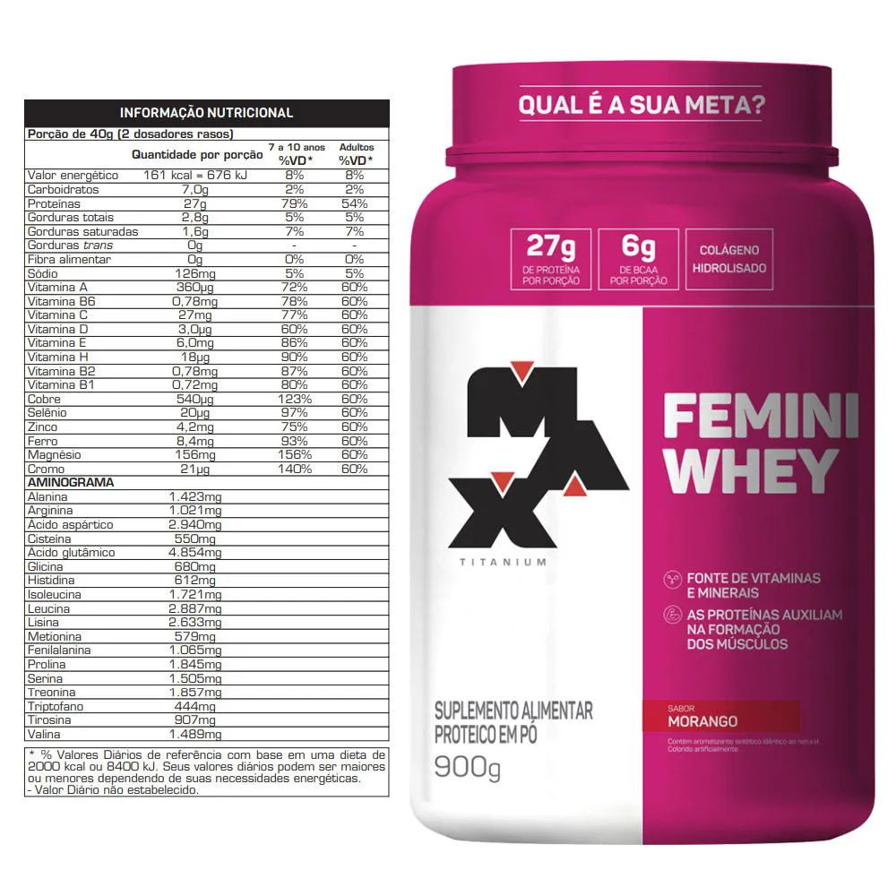 Whey Protein Femini Max Titanium Morango 900g