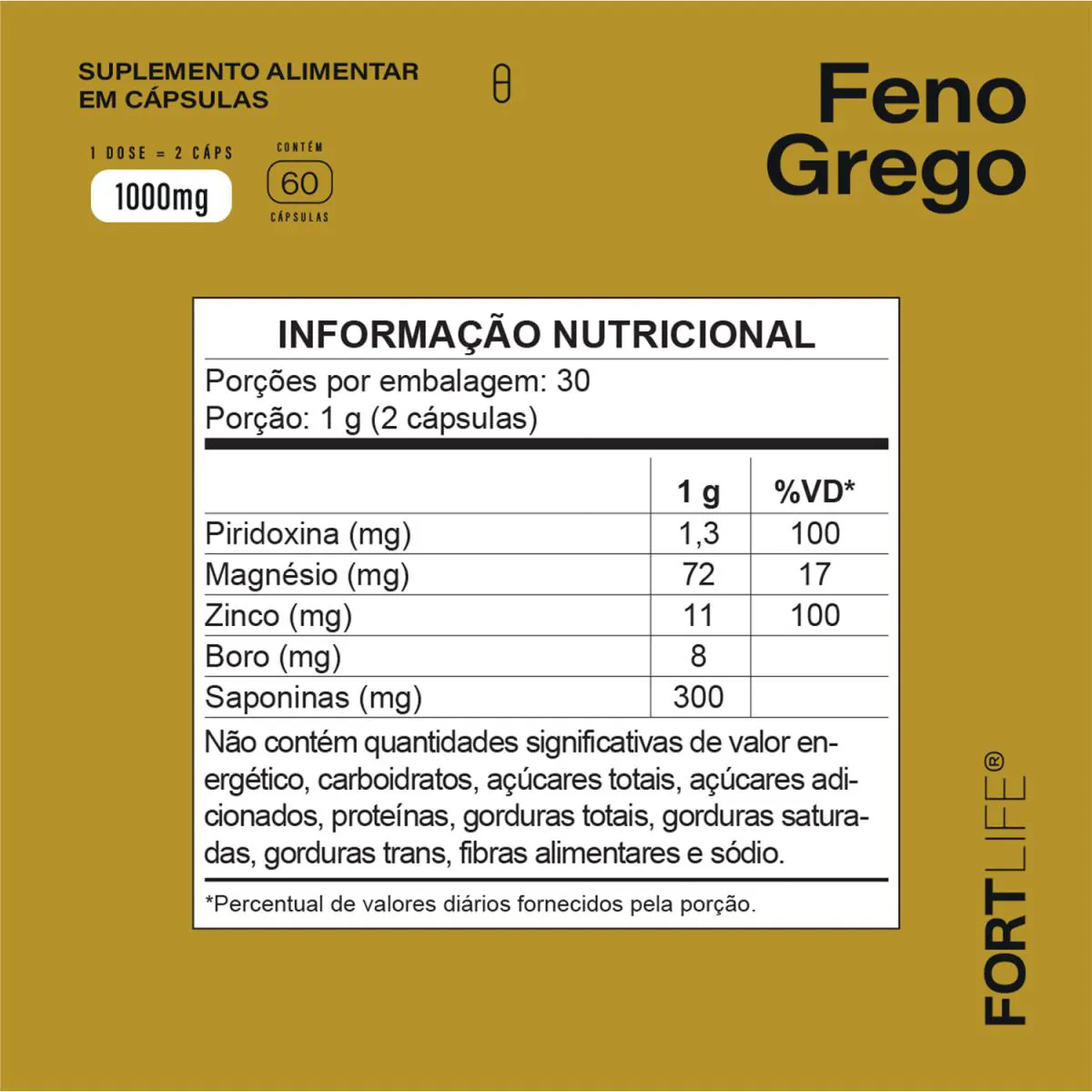 O Feno Grego FortLife é um suplemento nutricional composto por um blend de ativos, incluindo Feno-Grego, Boro e Magnésio, desenvolvido para potencializar hormônios e fornecer força e vitalidade ao organismo.