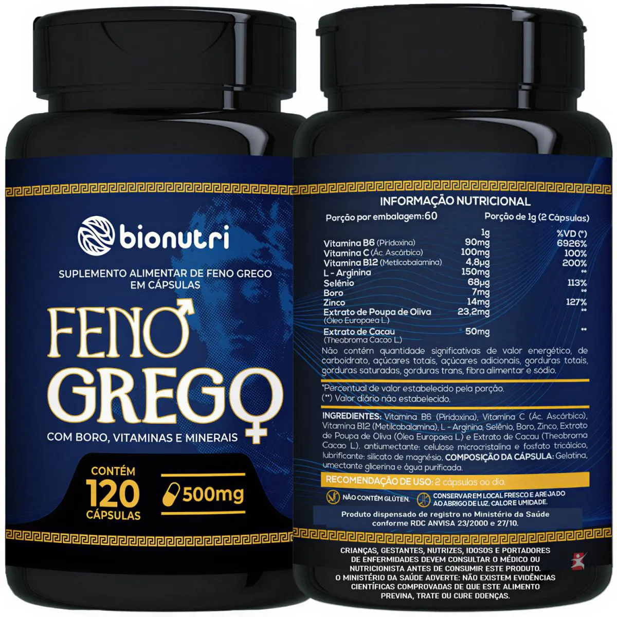 Feno Grego com Boro Vitaminas e Minerais 120 Capsulas - Bionutri