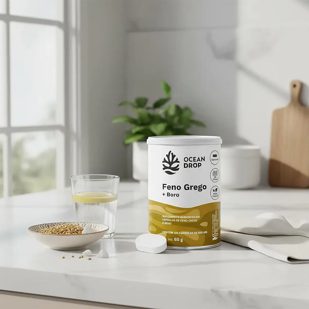 Feno Grego e Boro Ocean Drop 120 Cápsulas + Porta Cápsulas Ingredientes: