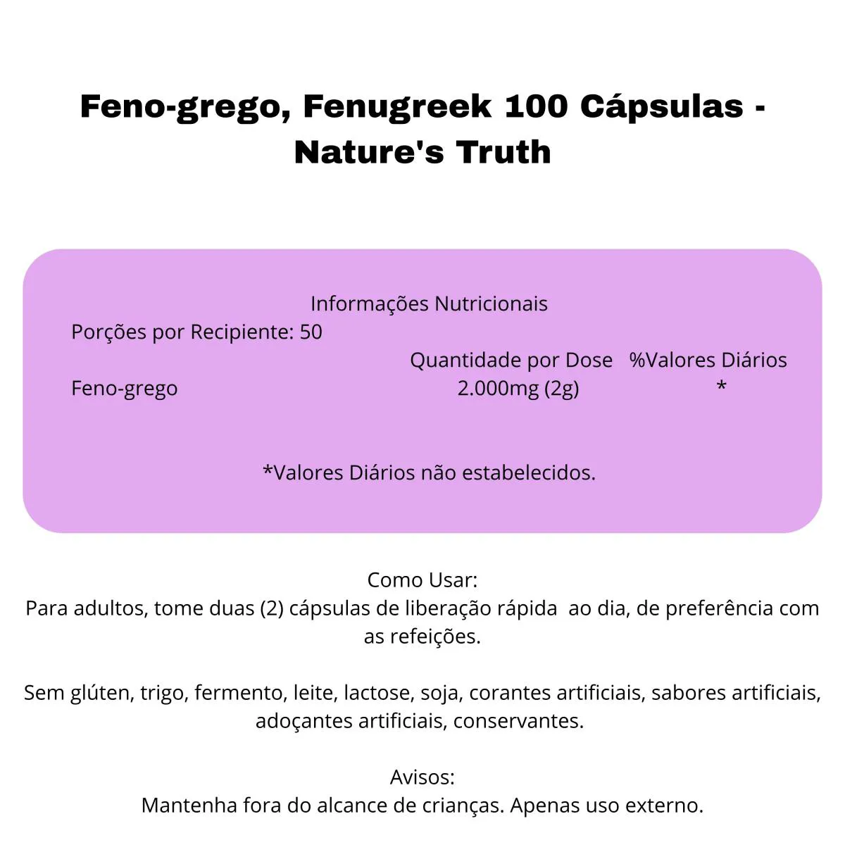 Como usar o Feno-Grego, Fenugreek 100 Cápsulas - Nature'S Truth?