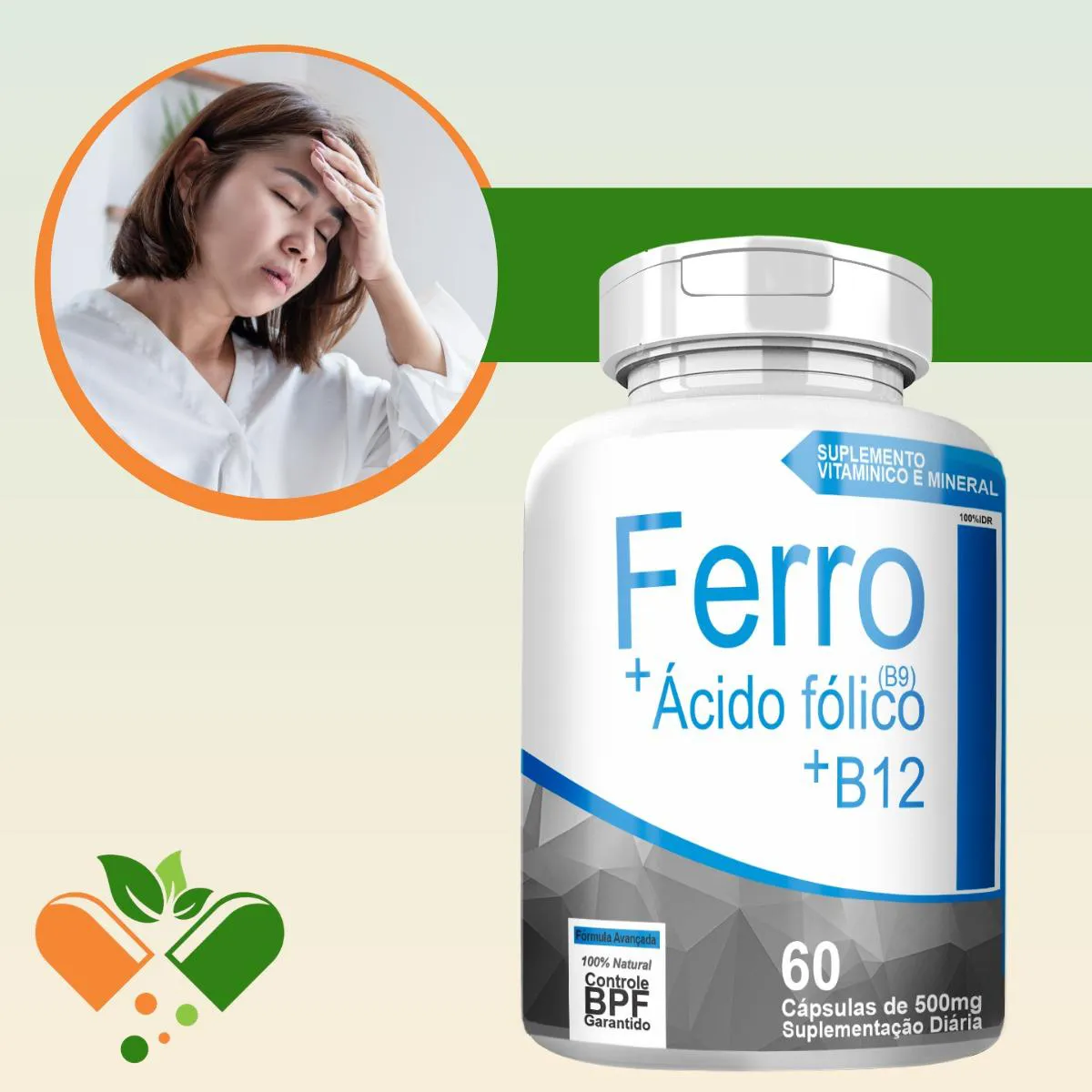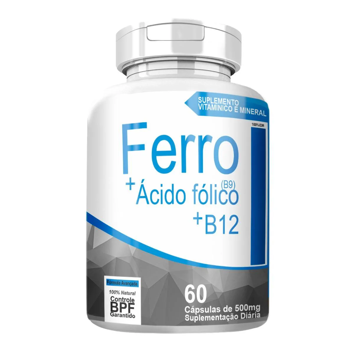 Ferro + Ácido Fólico (B9) + B12 60 Cápsulas