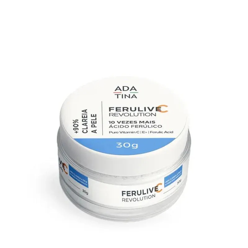 Ferulive C Revolution é o creme com textura mousse clareador anti-idade altamente concentrado de ADA TINA, formulado com 10x mais Ácido Ferúlico, 30% de vitamina c Pura e vitamina e.Clareamento Avançado