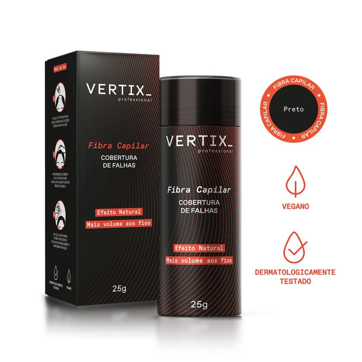 Fibra Capilar para Cabelos Pretos 25G - Vertix