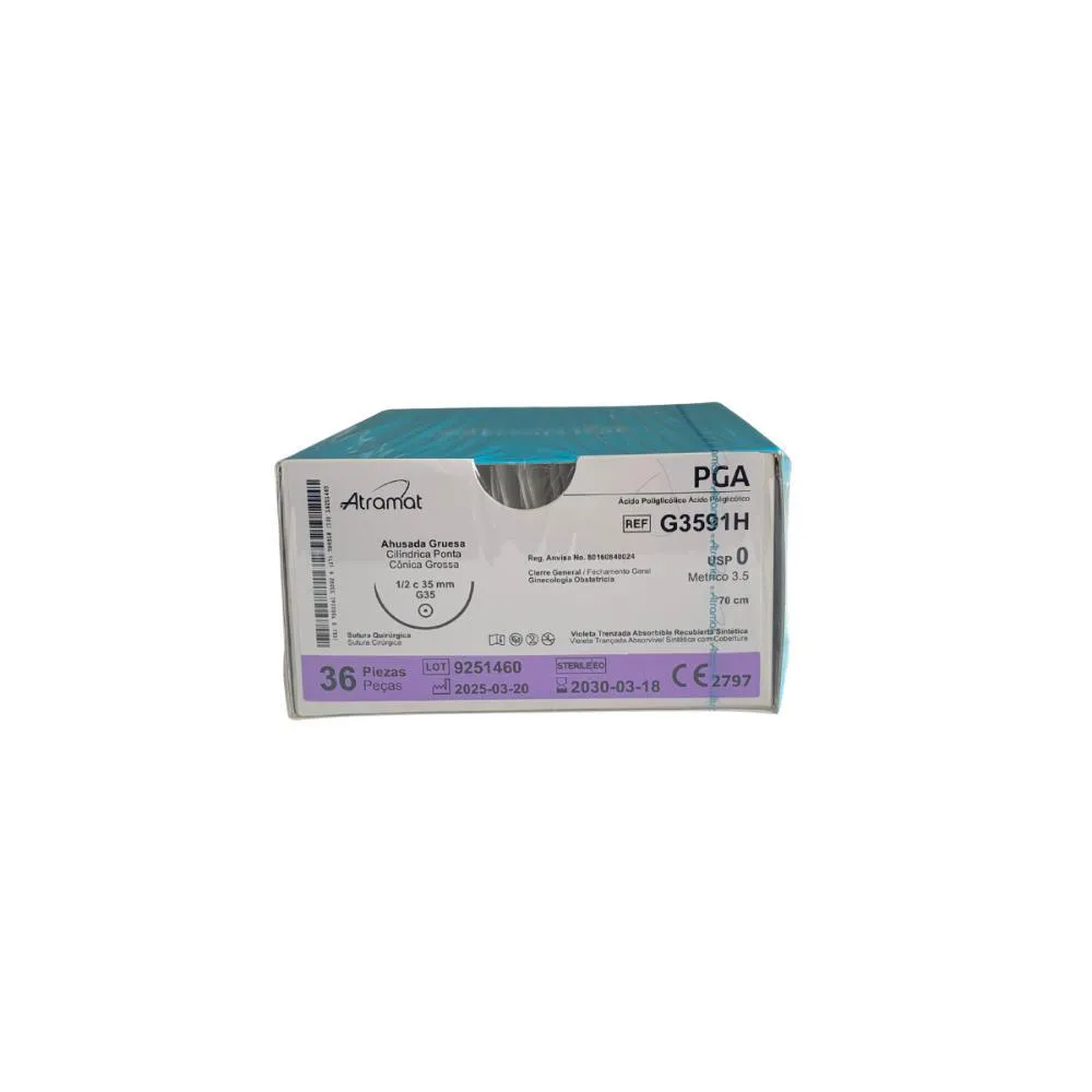 O Ácido Poliglicólico 0 – G3591H da Atramat é um fio cirúrgico sintético e absorvível de alta performance, indicado para procedimentos que exigem sutura precisa, resistente e com absorção controlada. Produzido em PGA (Ácido Poliglicólico), combina excelente resistência à tração, manuseio suave e absorção previsível.Acompanha agulha cilíndrica de 35 mm, com ponta cônica grossa e curvatura 1/2 círculo, ideal para penetração eficiente em tecidos moles com mínimo trauma.Modelos Disponíveis